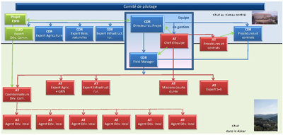 Un Comité de Pilotage est mis en place pour superviser et approuver l'orientation générale et la ligne d'action du programme. Le Comité de Pilotage est composé de représentants du CDR (qui en assurera la Présidence) de la Délégation de la CE (avec statut d'observateur), de l'OMSAR (qui met en œuvre des projets de développement local avec le financement de la CE), et du Ministère de l'Intérieur et de Municipalités, du Ministère de l'Énergie et de l'Éléctricité et du Ministère de l'Agriculture.