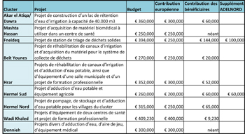A la suite de l'élaboration des plans de développement local réalisés par l’ESFD, des contrats de subvention ont été signés le 19 juillet 2012 avec les autorités locales responsables de la mise en œuvre des projets retenus. Les autorités locales sont assistées dans la réalisation de leurs actions dans le cadre des contrats de subvention. Le processus d'identification de projets a abouti à rédiger neuf contrats de subvention. Les contrats concernent les projets suivants :