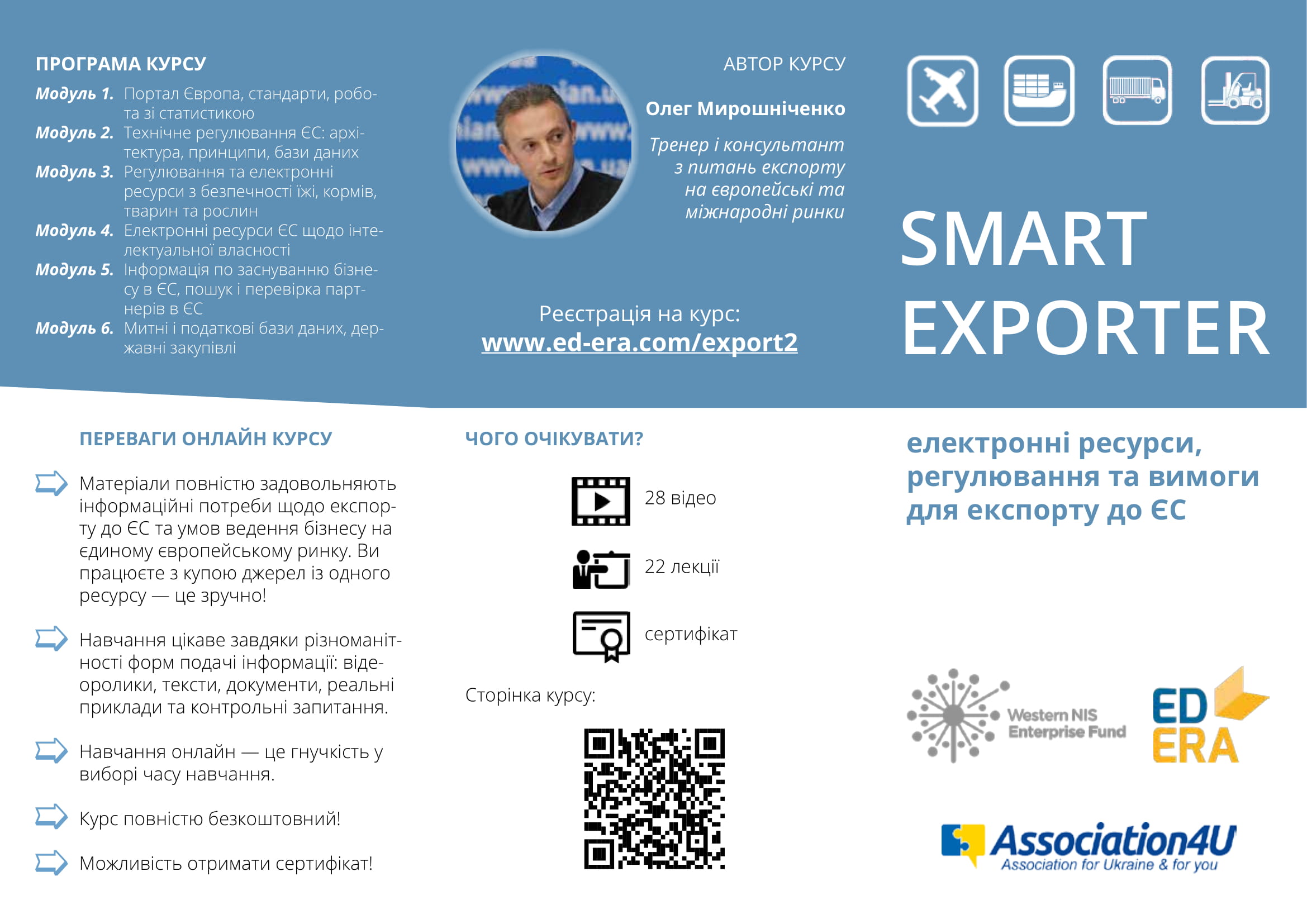 Безкоштовний онлайн-курс для експортерів "Smart exporter: електронні ресурси, регулювання та вимоги для експорту до ЄС" від Олега Мирошніченка розпочнеться 1 березня на платформі EdEra.