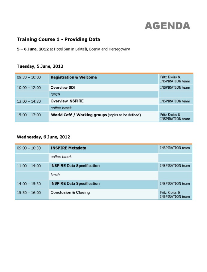 The first regional event of the INSPIRATION project is going to take place in Banja Luka, Bosnia-Herzegovina from 5-8 June, 2012. The first two days, 5-6 June, will be dedicated to the first training on the implementation of the INSPIRE directive. This training will focus on providing data and includes speakers from Austria, Croatia, Germany and Slovakia. Aside from introductory presentations on spatial data infrastructure (SDI) and INSPIRE implementation, the event’ sessions will focus on metadata and data specifications. On 7-8 June, the Fifth Regional Conference on Cadastre and Spatial Data Infrastructure will be held. This conference is organized by the Permanent Regional Technical Commission whose members are National Mapping and Cadastre Authorities, and is supported by the INSPIRATION project. One of the key elements of the Conference will be the presentation of the Regional Annual Cadastral Study for 2012. Another element comprises a presentation on Land Administration´s Role in Capital Investment Projects of Regional Significance as a special topic chosen for this year’s Regional Event.