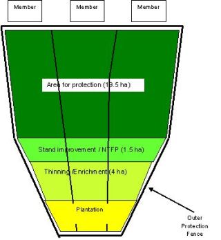 In the project implementation strategy, the three sub-indicators represent a sequence of tasks in the sense that guidelines for forest protection have to be in place and applied before forest land should be allocated to households or user groups. Likewise, community forestry (or more exactly “Community-based Forest Management”, CBFM) only makes sense after households and user groups have received secure land titles.