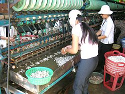 In the value chain (VC) of the silk production industry (or sericulture), raw silk is the final product of the local cluster of mulberry plantation, silkworm rearing and cocoon reeling in some 10 lowland communes of Tuyen Hoa district. It was chosen as one of the value chains supported by the SMNR-CV project for several reasons: high demand for raw silk in the domestic and export markets; potential for income and employment generation focused on for rural poor women; high rate of return on investment by rural households in the localities; processing capacity for the very perishable intermediate product of silk cocoons (two small privately owned reeling factories) already installed and operational. In addition to economic and social considerations; mulberry plantations contribute to the reinforcement of river banks and thus to the ecologically sustainable management of local natural resources.