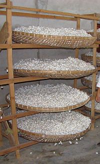 Since mid 2008, it has become evident that the silk industry in Vietnam is undergoing a significant structural change. With suppliers from China entering the market, the price of raw silk and the price for the cocoons supplied by farmers in the project region has decreased by about 20% which has led a number of households switching to other cash crops. With the support from local authorities the SMNR-CV project has assisted the sericulture association in formulating a strategy and action plan to restructure and consolidate the local production with the aim to re-gain its cluster competitiveness. Critical issues are, among others, the improvement of silkworm hatching and rearing techniques to achieve a more harmonized quality standard.