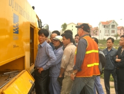 Cleaning of sewers and manholes with suction vehicle and winches